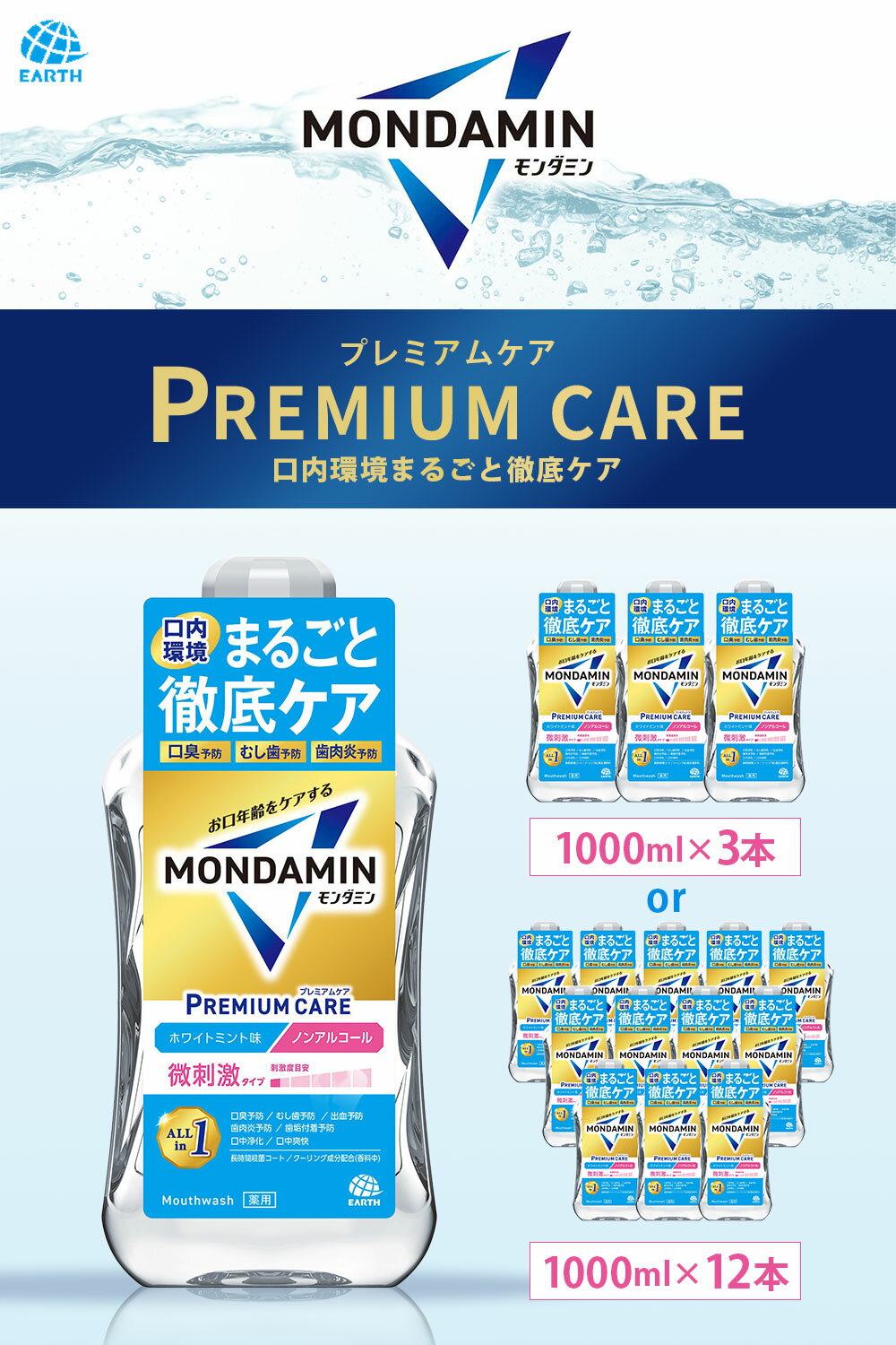 - 【ふるさと納税】<選べる容量> モンダミン プレミアムケア ホワイトミント(ノンアルコール)1000mL 3本 ・ 12本 洗口液 マウスウォッシュ 口腔ケア 口内ケア オーラルケア アース製薬 モンダミン 口臭 浄化 ミント 殺菌 歯肉炎 むし歯 予防 兵庫県 赤穂市 常温 送料無料