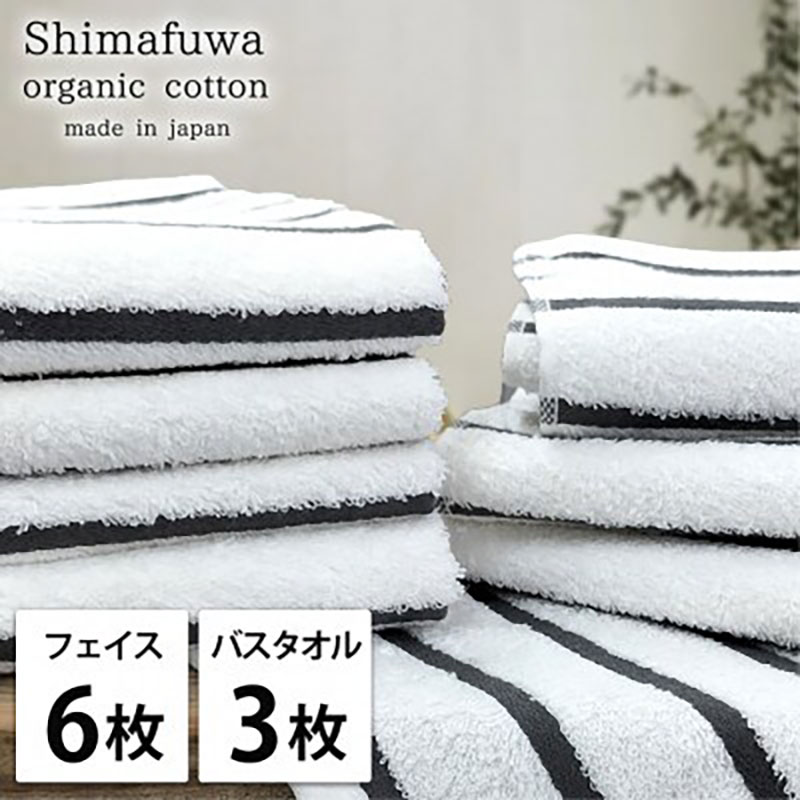 【ふるさと納税】タオルセット オーガニックコットン しまふわ GY グレー フェイスタオル 6枚 バスタオル 3枚 タオル セット 綿 オーガニックコットンタオル 綿100% 綿100 オーガニック 中厚手 大阪府 岸和田市 お届け:お申し込み後、3週間程度で順次発送予定