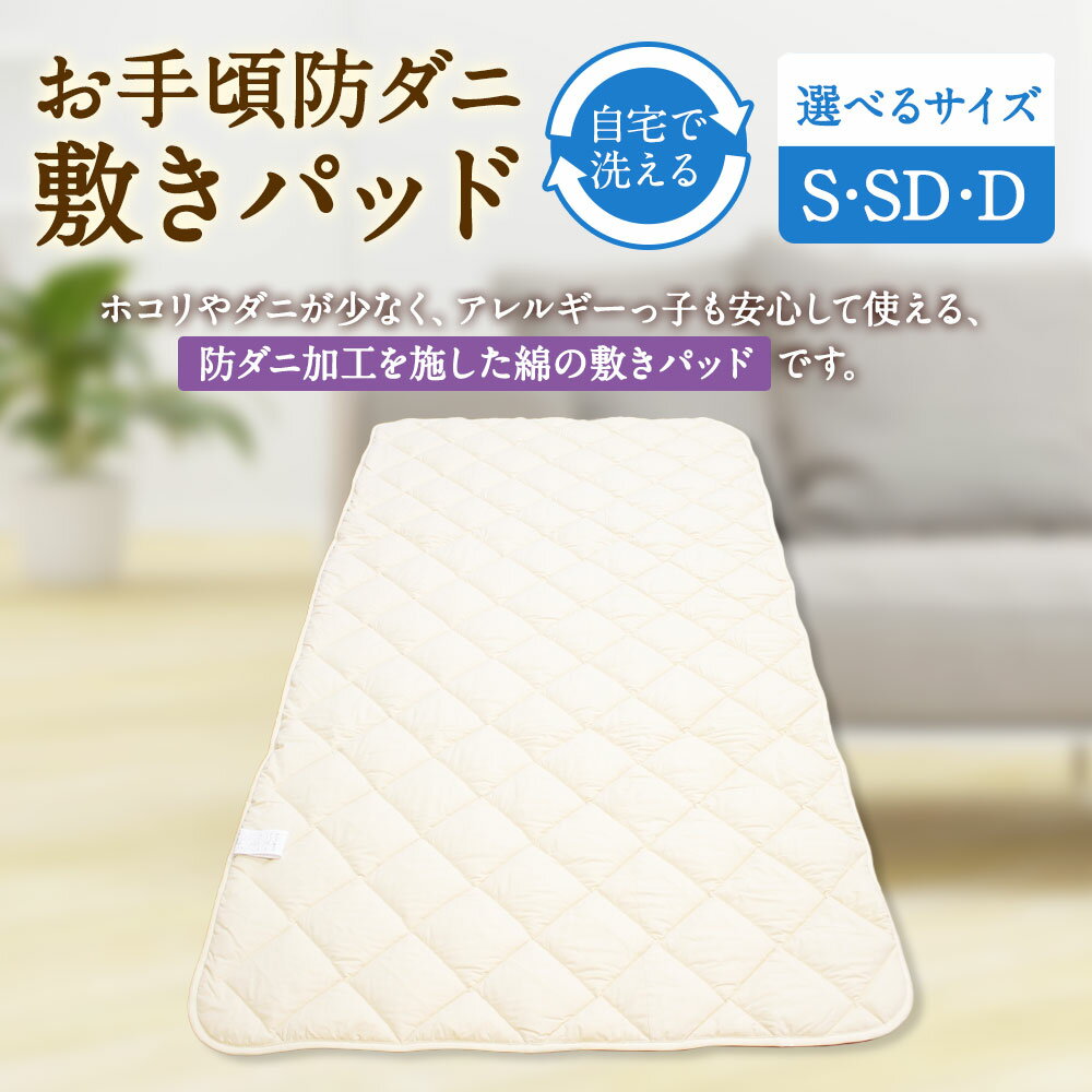 【ふるさと納税】<選べるサイズ>お手頃防ダニ 敷きパッド シングル・セミダブル・ダブルサイズ 側生地:綿100% 中綿 :高機能ポリエステル100% 敷パッド しきパッド ベッドパッド 布団 洗える ダニ対策 アレルギー 寝具 日本製 国産 福岡県 みやま市 送料無料 S77 S78 S79