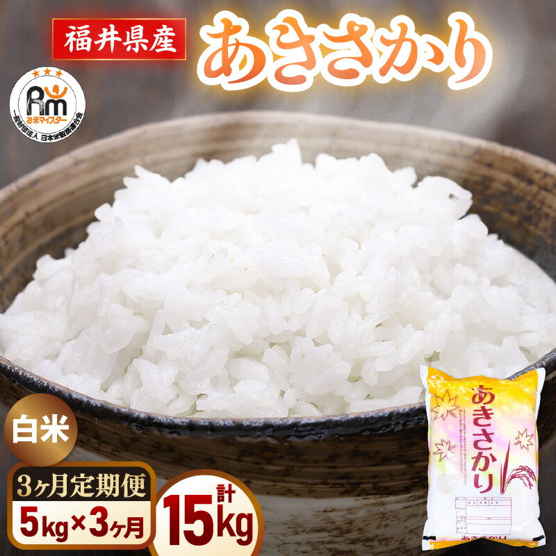 【ふるさと納税】【新米】令和7年産 米 定期便3ヶ月 あきさかり 精米 5kg × 3回(計15kg)福井県産【白米 5キロ 15キロ アキサカリ お米 ごはん 人気品種 産地直送 新生活 kome】