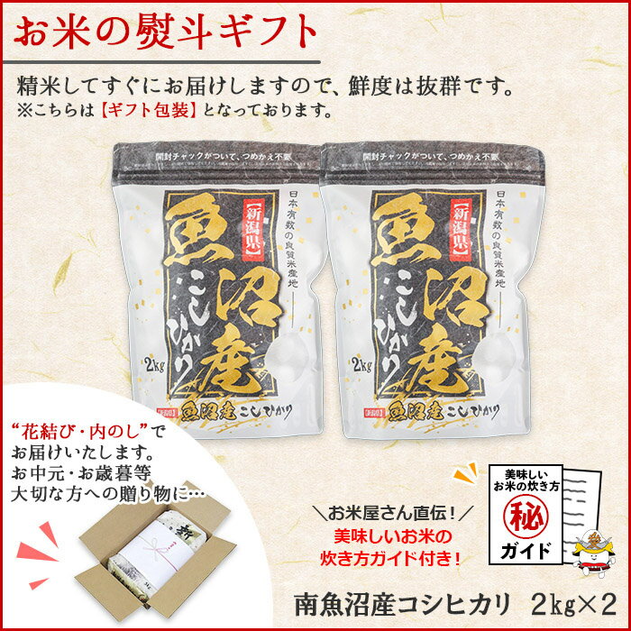 【ふるさと納税】【令和7年産】無地熨斗 新潟県 南魚沼産 コシヒカリ お米 2kg 2袋 計4kg ギフト gift プレゼント お中元 お歳暮 精米 魚沼 米 こしひかり 送料無料 炊き方ガイド付き【2025年10月中旬より順次発送予定】 | お米 こめ 白米 コシヒカリ 食品 南魚沼