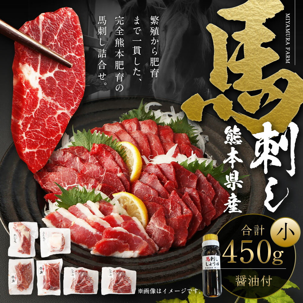 - 【ふるさと納税】熊本県産 馬刺し 450g セット (小) 食べ比べ 詰め合わせ 赤身100g×2 上赤身100g×2 馬ヒモまたはフタエゴ50g×1 醤油付き 馬肉 肉 国産 熊本県 西原村 送料無料
