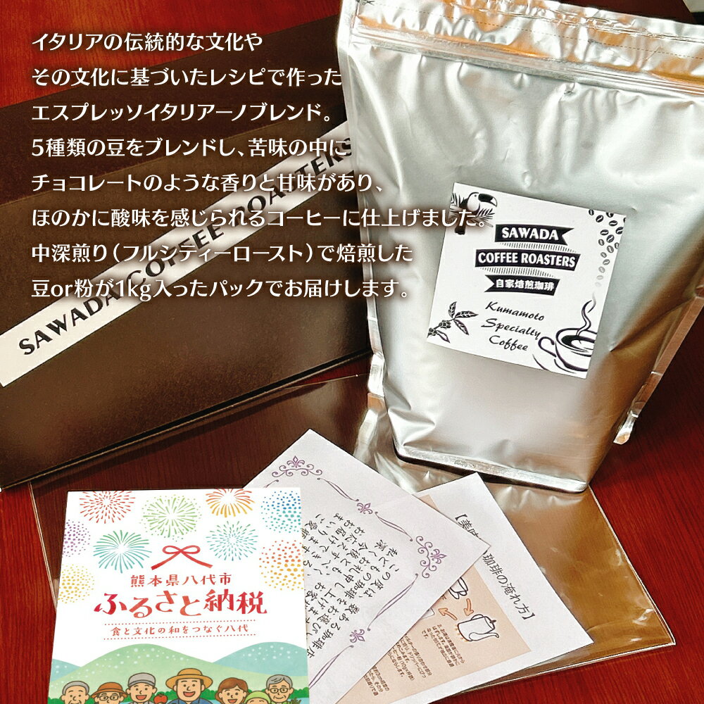 【ふるさと納税】 エスプレッソブレンド 1kg 自家焙煎珈琲 【選べる種類】 豆 or 粉 レギュラーコーヒー 高品質 中深煎り 焙煎 エスプレッソ ブレンド コーヒー 珈琲 イタリアーノ ブレンド 送料無料