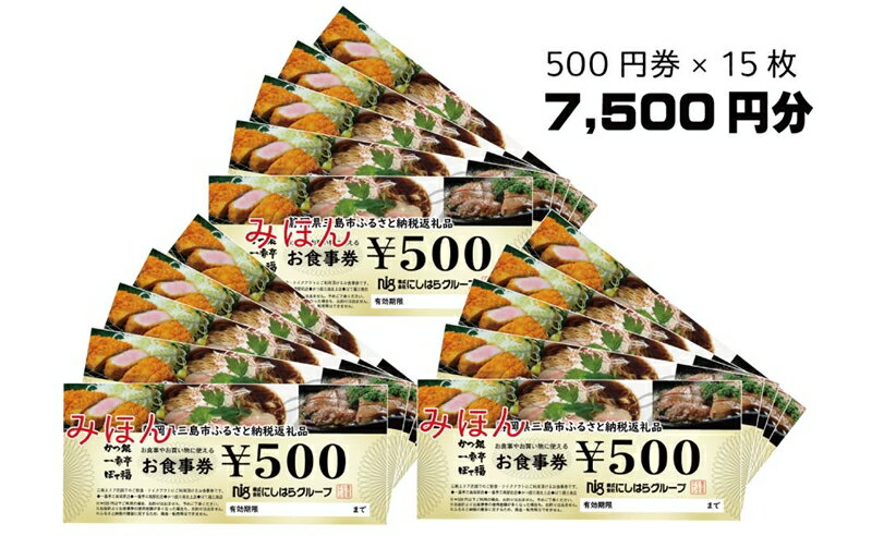 【ふるさと納税】 にしはらグループ お食事券 7,500円相当 一番亭 ぼて福 かつ銀 現地型 観光 グルメ 飲食店 レストラン 和食 洋食 ファミリー 外食 ディナー ランチ 地元 特産品 名物 名店 旅行 おでかけ 三島駅前 テイクアウト ご飲食 500円券 15枚 静岡県 三島市