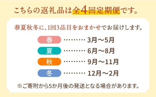 - 【4回定期便】フルーツ定期便 旬の果物をお任せで3品目お届け(3品目×4回) / 定期便 フルーツ 季節の果物 春フルーツ 夏フルーツ 秋フルーツ 冬フルーツ / 南島原市 / 吉岡青果 [SCZ020]