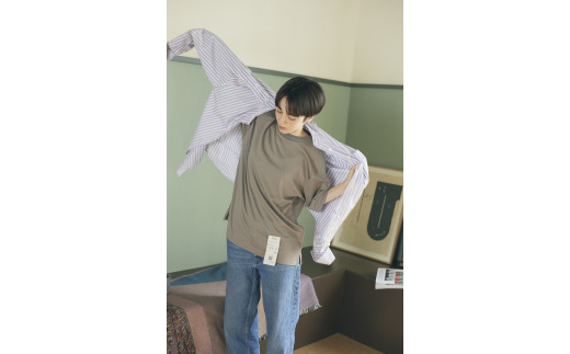 - [60-06-2] 【尾州産】想像を覆す極上メリノウール100%Tシャツ(ライトグレー)Mサイズ