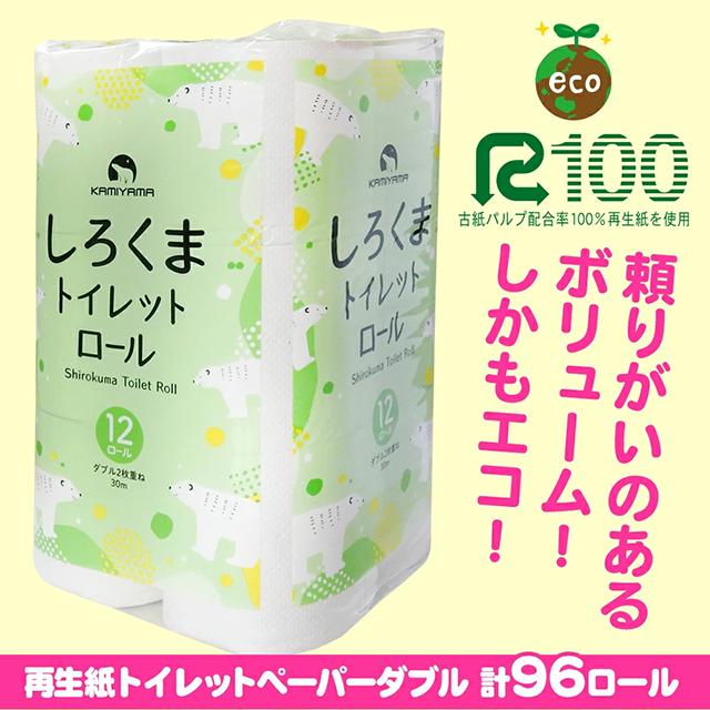 - 【定期便/3ヶ月】\選べるお届け回数/ トイレットペーパー しろくま ダブル 30m 12ロール×8パック (96ロール) ふるさと納税 無香料 業務用 大容量 まとめ買い 再生紙 長尺 リサイクル エコ 日本製 柔らかい 人気 価格 おすすめ 送料無料 岩手県 一関市