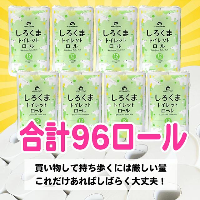 【定期便/3ヶ月】\選べるお届け回数/ トイレットペーパー しろくま ダブル 30m 12ロール×8パック (96ロール) ふるさと納税 無香料 業務用 大容量 まとめ買い 再生紙 長尺 リサイクル エコ 日本製 柔らかい 人気 価格 おすすめ 送料無料 岩手県 一関市