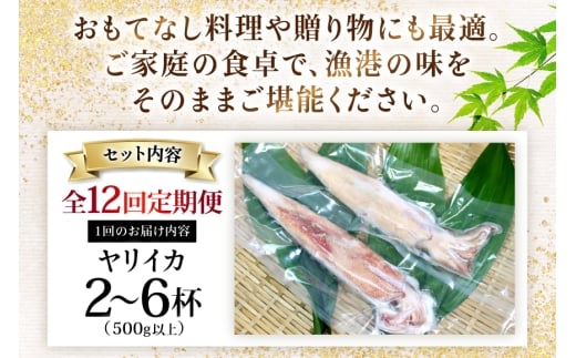 - イカ 刺身 極鮮 ヤリイカ 計6.0kg(約500g×12回) 12回 定期便 [海隆丸 長崎県 平戸市 hr42bgy400086] おつまみ ヤリイカ 新鮮 海鮮 魚介 瞬間冷凍 冷凍 コリコリ 直送 冷凍 個包装 真空パック