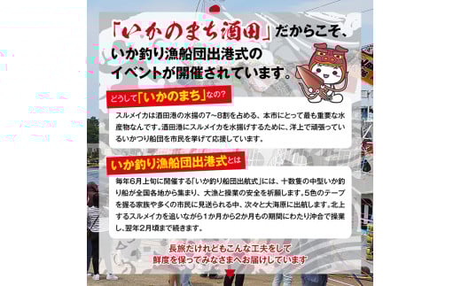 - するめいか 約2kg 2尾 4袋 計8尾 (1尾約250g) 冷凍便 釣りたて 急速冷凍 産地直送 小分け 新鮮 いか いか飯 刺身 いかソーメン 刺し身 海産物 魚介 イカ焼き 塩辛 フライ いかのまち酒田 いか釣り漁船団 山形県漁業協同組合 山形 酒田 SB0401