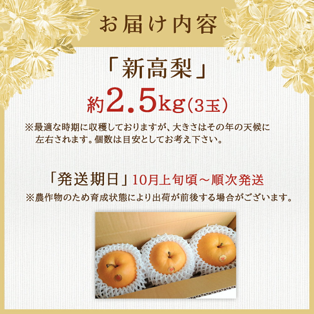 【ふるさと納税】【数量限定】 新高梨 2.5kg(3玉) 門脇農園 四万十育ちの新高梨 Ckn-A003 大玉 枝熟れ 完熟 梨の王様 なし ナシ フルーツ デザート 果物 旬 幸水 豊水 秋月 新興 シャリシャリ 新鮮