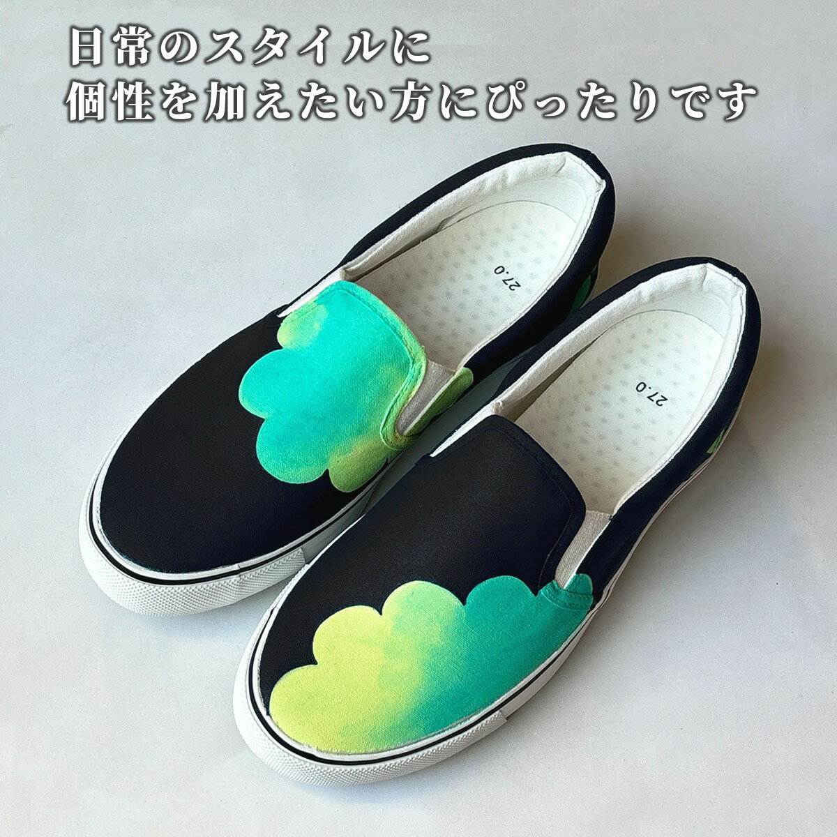 【ふるさと納税】スニーカー moku-surf D 手描きスリッポン 左右非対称デザイン 雲柄 グラデーション 黒地 アシンメトリー 大人可愛い おしゃれ おすすめ レディース メンズ ユニセックス ワイズ 2E 22.0~28.0cm【受注制作】