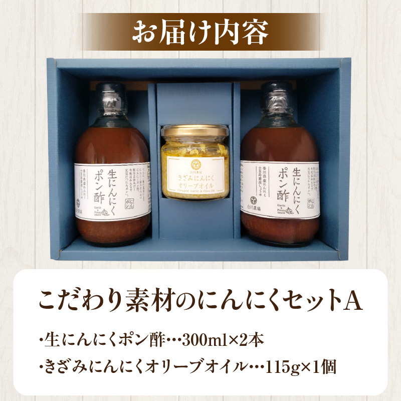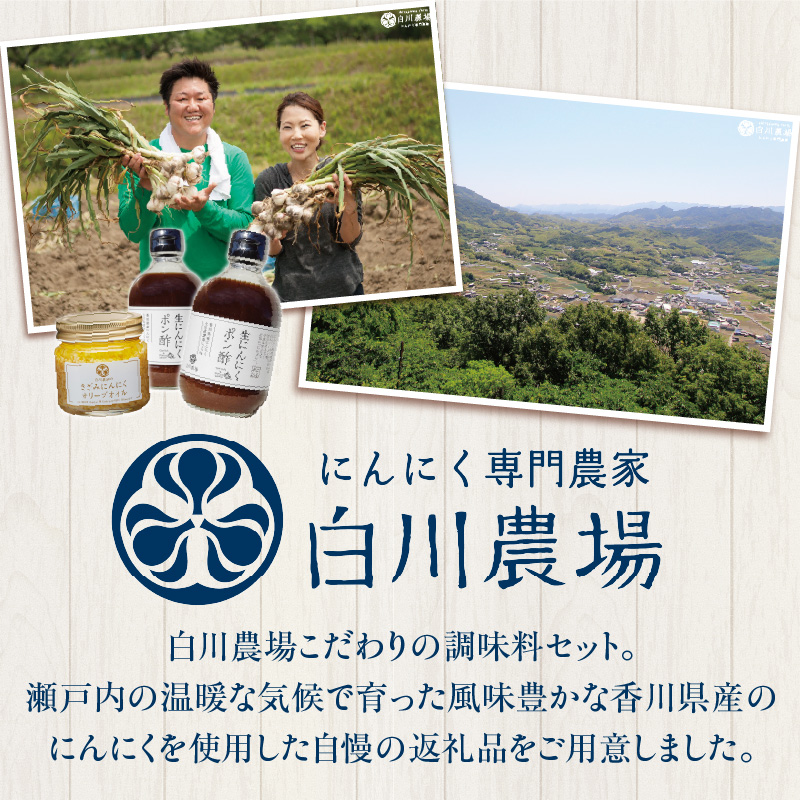 - 【ふるさと納税】こだわり素材のにんにくセットA [ 国産 にんにく 使用 調味料 薬味 香味 食用油 こめ油 ポン酢 ドレッシング ガーリック オイル 詰め合わせ セット 料理 お取り寄せ 人気 送料無料 香川県 三豊市 返礼品 白川農場 ]