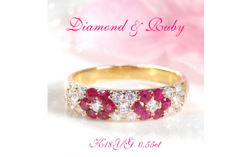 指輪 K18YG イエローゴールド ダイヤモンド 0.5ct ルビー レディース リング フラワー 花 パヴェ 月甲丸【f236-k18yg-ru】 ※10.5号 ALPAZ099-10_5