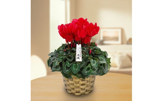 R4-107 星野愉司さんの真紅のシクラメン「赤城」(ギフト用バスケット付き)5号鉢
