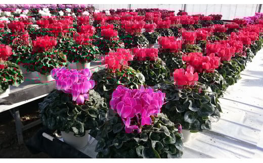 - R4-107 星野愉司さんの真紅のシクラメン「赤城」(ギフト用バスケット付き)5号鉢