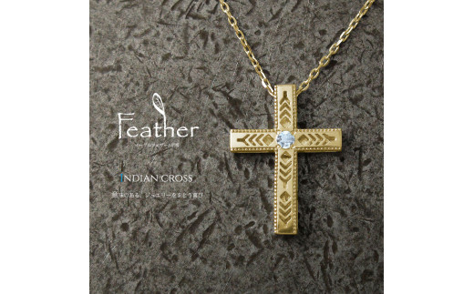 - K18YG フェザークロスネックレス インディアンジュエリー アクアマリン 180807w-birth-k18-yg-aq