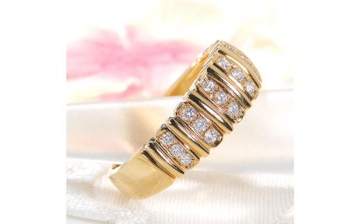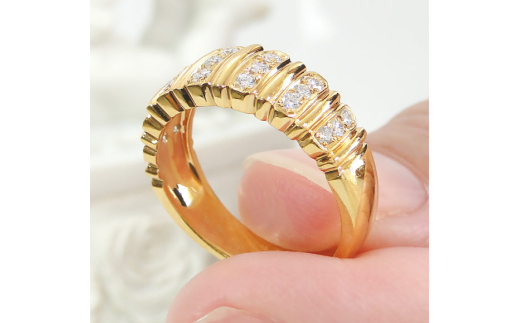 指輪 K18YG イエローゴールド ダイヤモンド 0.28ct 5〜16号 ストライプ 幅広 ボリュームリング【f065-k18yg】 [株式会社オーダーメイドジュエリーメイ 山梨県 韮崎市 20742949-q] リング アクセサリー ジュエリー アクセ
