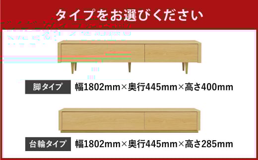 ライズ テレビボード 180【ウォールナット / オーク】【脚タイプ/台輪タイプ】