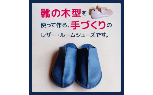 タンニンレザーのルームシューズ【コバルトブルー】Lサイズ ( 25 ~ 27cm ) | 靴 ルームシューズ タンニンレザー 長野県 松本市 ふるさと納税