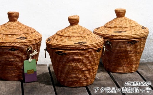 - BAI-262SIN アタ 真鍮取っ手円錐バスケット(黒模様・φ23×H25)