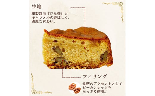 限定品 精製醤油「ひな菊」とキャラメルのケイク 1ホール | 茨城県 常陸太田市 ケーキ お菓子 洋菓子 美味しい おいしい 最高品質 ひな菊 醤油 風味 キャラメル 濃厚 滑らか 味わい ピーカンナッツ 香ばしい かっりとした触感 上品 甘さ 控えめ パウンドケーキ 万博 銅賞 醤油ケーキ 変わったケーキ