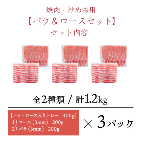 ソヤマポークのバラ&ロース3mmセット1.2kg[焼肉 炒め物 蒸し物 煮物 揚げ物 生姜焼き 豚丼 肉じゃが カレー 宮崎県産 豚肉]]TF0829-P00078