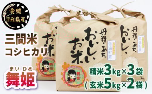 - 新米 三間米 コシヒカリ 舞姫 3kg × 3袋 ( 玄米5kg × 2袋 ) 喜菜家 ブランド米 お米 米 kome 小分け お弁当 弁当 おにぎり 玄米 対応可 ふっくら ツヤツヤ 甘い 国産 愛媛 宇和島 G036-127002
