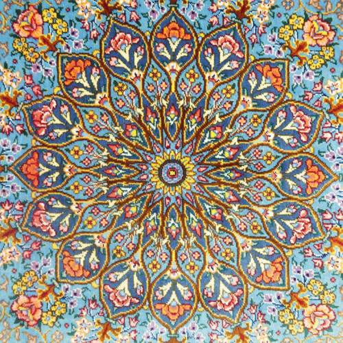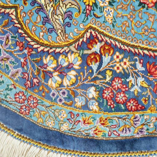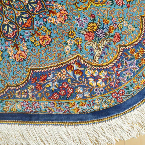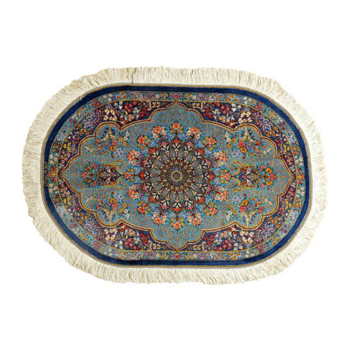 - 【限定1品】 ペルシャ絨毯 シルク100% 手織り ラグマット カーペット/ 高級 玄関マットサイズ 89×61cm 高品質 じゅうたん ラグ (FS-2114) メダリオン 青 エントランスマット 寝室 書斎 和室 じゅうたん ラグ [BP165-NT]