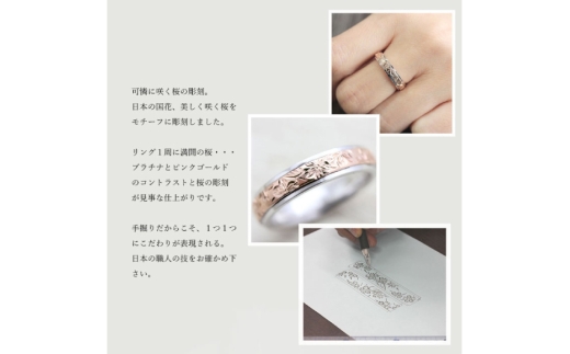指輪 プラチナ PT900 K18PG ピンクゴールド コンビ 5号〜14号 レディース リング 桜 手彫り彫刻 18金 マリッジリング 和風 アクセサリー ジュエリー アクセ 【239-ptpg】 [オーダーメイドジュエリーメイ 山梨県 韮崎市 20745072-k]