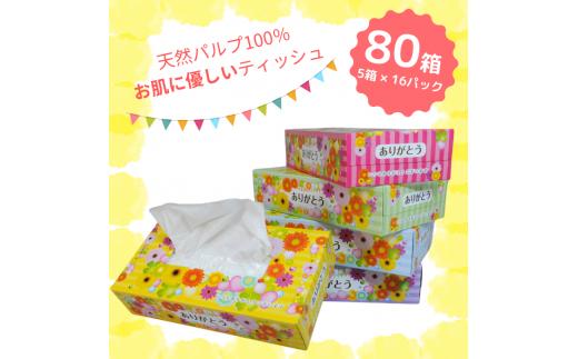 ありがとうティッシュ BOXティッシュ 80箱 5個 16パック ボックスティッシュ ティッシュ ティシュー デザインボックス 日用品 消耗品 備蓄 防災 ありがとう パルプ100% ふるさと納税 送料無料 愛媛県 四国中央市