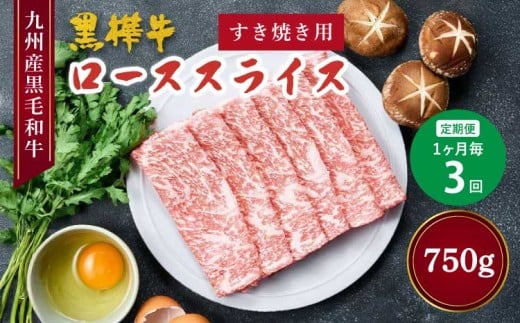 - 【1ヶ月毎3回定期便】黒毛和牛 ロース スライス すき焼き用 計約750g(約250g×3回)