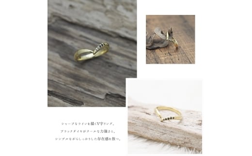 - 結婚指輪 メンズリング K18YG ブラックダイヤモンド 0.07ct イエローゴールド V字リング ジュエリー マリッジリング 【294-k18ygm】 ALPAZ161