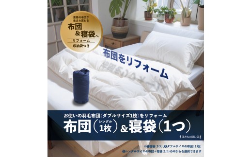 - 【シングル羽毛1枚・寝袋1個】ダブル羽毛布団リフォーム | 寝具 布団 ふとん 羽毛布団 羽毛ふとん リフォーム 掛け布団 かけ布団 打ち直し 手作り布団 日本製布団 日本製 手作り てづくり ふかふか布団 職人仕立て ダブル 父の日 群馬県 前橋市