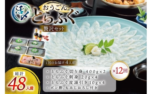 - ふぐ 刺身 ふぐ鍋セット 活〆 おうごんとらふぐ 贅沢 セット 4人前 12回 定期便 [松永水産 長崎県 平戸市 hr42bgy400017] ふぐ刺し とらふぐ フグ 河豚 てっさ てっちり ふぐ鍋 湯引き 魚介 さかな お刺身 刺身用 さしみ 冷凍 海鮮