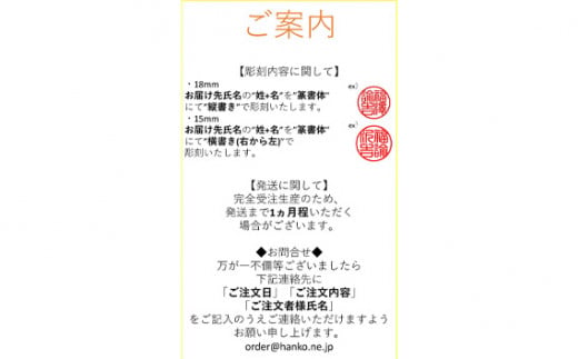 No.061 黒水牛 個人印2本セット【東洋堂】ケース付き 15mm 18mm / 印かん 篆書体 刻印 東京都