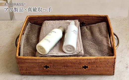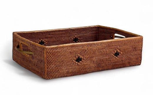 - BAX-002SIN アタ 真鍮取っ手収納バスケット(平型・ドット・W35×D25×H10)