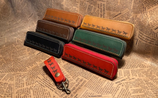 - 馬九いくキーリング(レッド)&馬九いくラウンドファスナーペンケース(ブラウン) 栗東市 / 株式会社ブルズエフ [BIAU115]