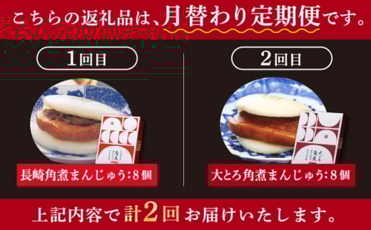 - 【全2回定期便】<月替り!>角煮まんじゅう 2種 お楽しみセット (角煮まんじゅう8個・大とろ角煮まんじゅう8個)≪小値賀町≫ 角煮まん 惣菜【岩崎本舗】 [DBG066]