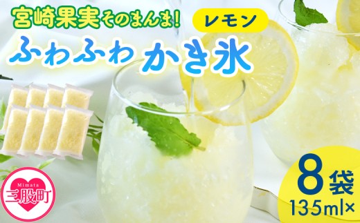 <宮崎果実のふわふわかき氷 レモン 135ml×8袋> かきごおり こおり 袋 フルーツ かき氷 氷菓 シャーベット ひんやり 冷たいデザート 柑橘スイーツ 果汁入り アレンジ サワー 氷割り お酒に合う【MI636-bk】【ベーカリー梅茂登】