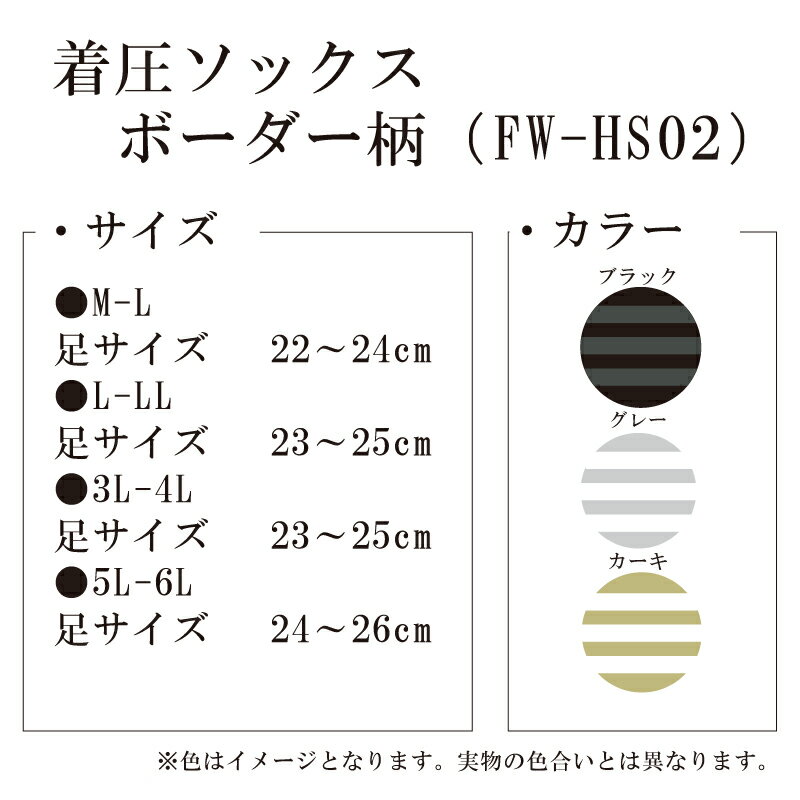 - 【ふるさと納税】 【フラワーレッグスシリーズ】着圧ソックス ボーダー柄 ブラック・グレー・カーキ M L 3 L-4 L 5 L-6 L FW-HS02 日用品 美容 生活用品 健康用品 健康グッズ スポーツ 旅行 トラベル 着圧