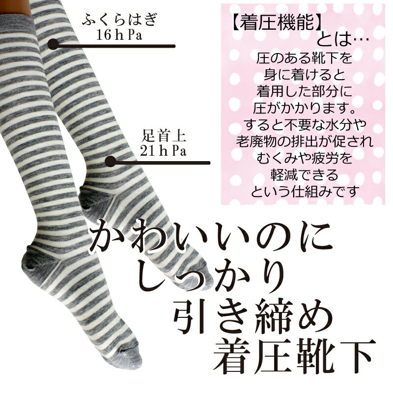 【ふるさと納税】 【フラワーレッグスシリーズ】着圧ソックス ボーダー柄 ブラック・グレー・カーキ M L 3 L-4 L 5 L-6 L FW-HS02 日用品 美容 生活用品 健康用品 健康グッズ スポーツ 旅行 トラベル 着圧