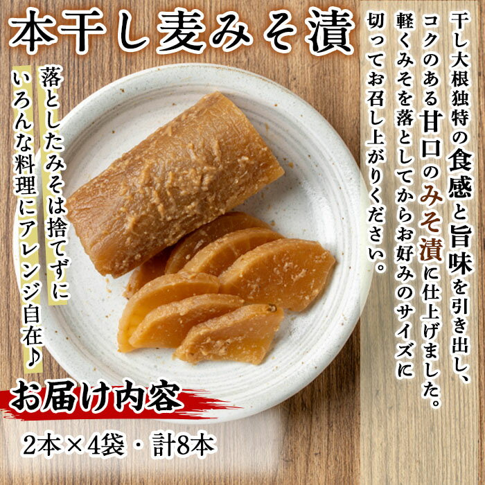 【ふるさと納税】中園久太郎商店のお漬物・本干し麦みそ漬(計8本・2本×4袋) 種子島産 国産 鹿児島県産 つけもの たくあん 沢庵 味噌漬け みそ セット 野菜 おかず【中園久太郎商店】