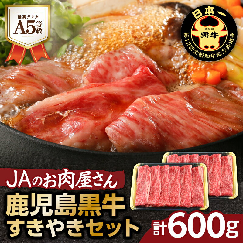- 【ふるさと納税】「 JAのお肉屋さん 」 A5 等級 ! 鹿児島黒牛 すきやき セット ( 計600g ) 送料無料 肉 牛肉 しゃぶしゃぶ 牛しゃぶ 黒毛和牛 国産牛 ブランド牛 肩ロース スライス JA 鹿児島市 土産 贈り物 プレゼント ギフト 贈答