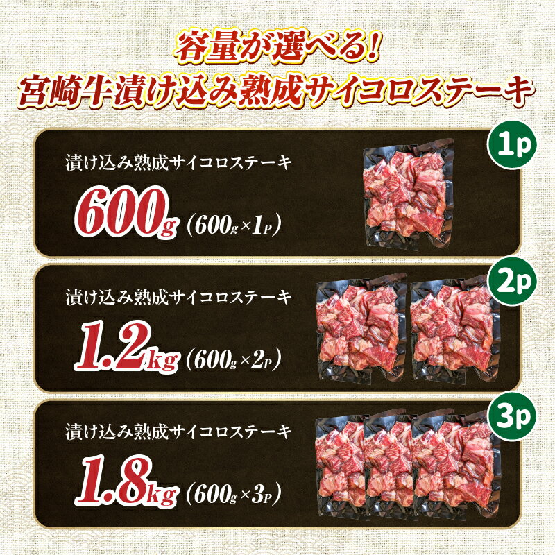 【ふるさと納税】宮崎牛漬け込み熟成サイコロステーキ 600g~1.8kg 国産 牛肉 国産牛 宮崎牛 黒毛和牛 お肉 肉 サイコロステーキ 熟成 ステーキ 冷凍 タレ漬け ステーキ肉 宮崎県
