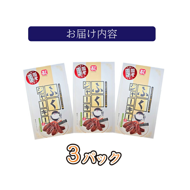【ふるさと納税】 国産 ふく ジャーキー 3パック ( 30g×3袋 ) ふぐ 常温 長期保存 おつまみ お酒のお供 晩酌 おかず 惣菜 おやつ フグ 河豚 シロサバフグ 国産原料 スパイス ふっくら食感 ふぐ本場 下関 山口