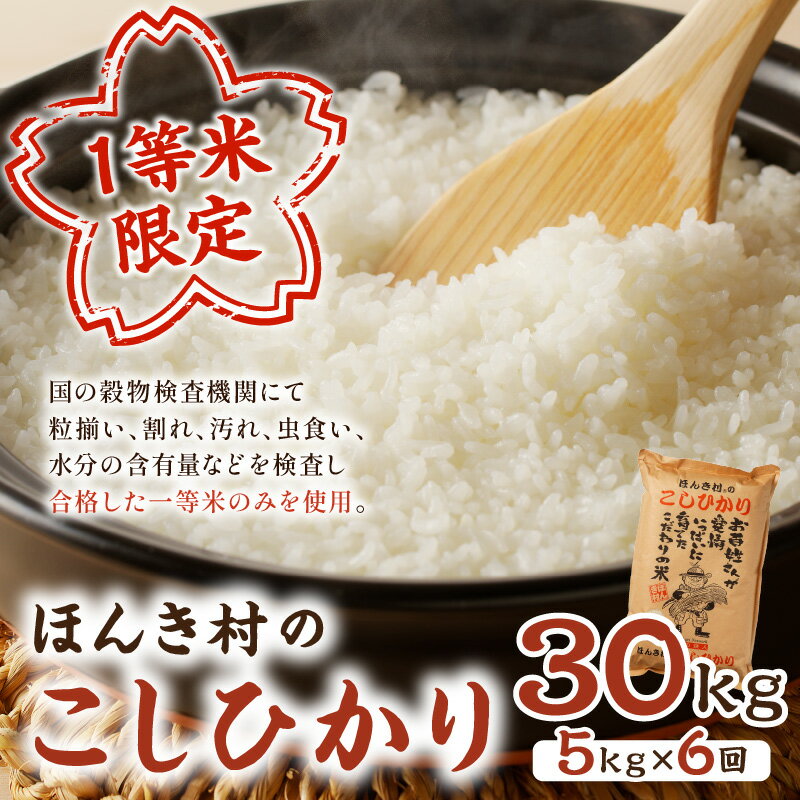 - 【ふるさと納税】【令和7年産】【新米先行予約】ほんき村のこしひかり 30kg(5kg×6回コース)【定期便】 お取り寄せ 特産 お米 新米 精米 白米 ごはん ご飯 コメ 新生活 応援 準備 【197_1953】