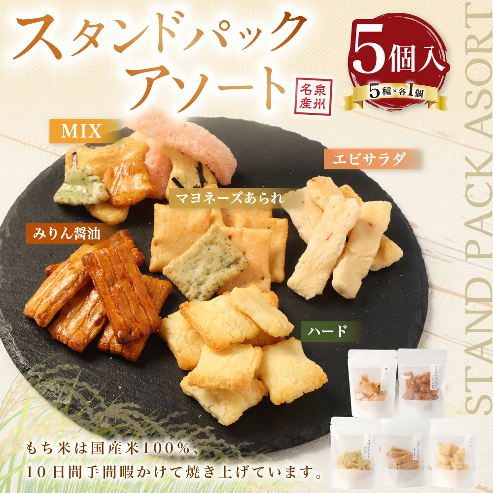 【ふるさと納税】スタンドパックアソート 5種類 各1個 【新興製菓】 もち米 和菓子 おやつ あられ おかき せんべい 人気 おすすめ おいしい ギフト プレゼント グルメ 食べ比べ 詰め合わせ セット お取り寄せ 送料無料