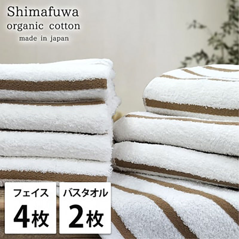 【ふるさと納税】タオルセット オーガニックコットン しまふわ BR ブラウン フェイスタオル 4枚 バスタオル 2枚 タオル セット 綿 オーガニックコットンタオル 綿100% 綿100 オーガニック 中厚手 大阪府 岸和田市 お届け:お申し込み後、3週間程度で順次発送予定
