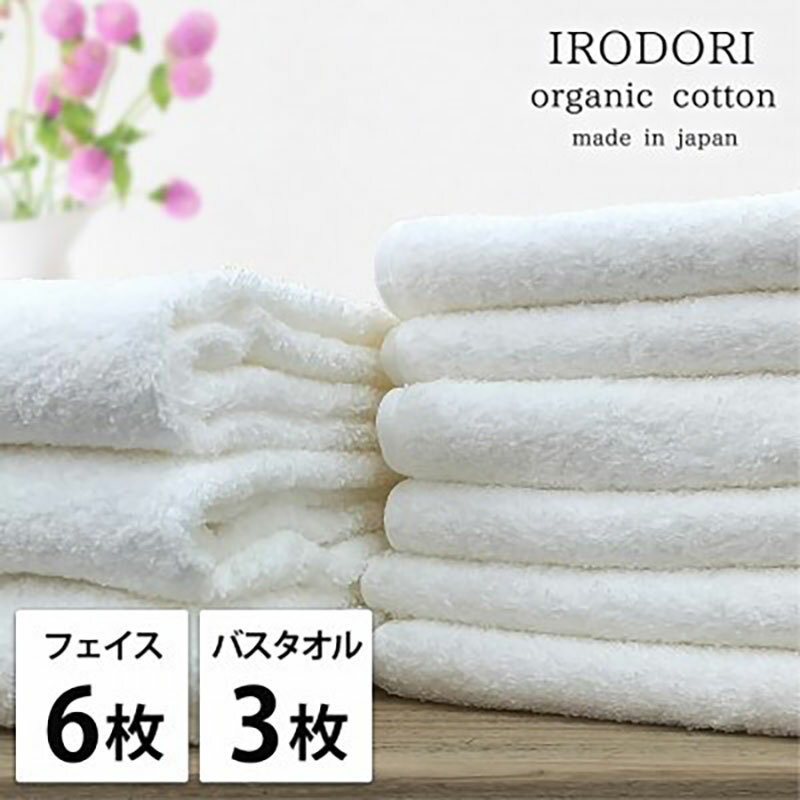 【ふるさと納税】タオルセット オーガニックコットン 彩り WH ホワイト フェイスタオル 6枚 バスタオル 3枚 フェイス タオル セット 綿 オーガニックコットンタオル 綿100% オーガニック 中厚手 大阪府 岸和田市 お届け:お申し込み後、3週間程度で順次発送予定
